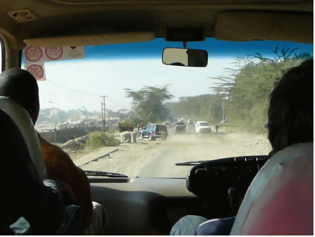 At the exit of the airport some stalkers were waiting for the tourist to offer them shuttle rides, taxi service and safaris. As we had our shuttle booked through the internet (Riverside shuttle), all we had to do was to wait in a bar there at the airport 5 hours for our bus to arrive. There were quite a lot of other people doing the same. A representative of the riverside company showed up within a few hours and confirmed our booking. She also sold us the tickets for the ride back to Nairobi. Interestingly she went pretty much below the price we paid online, offering a house to house service for 25 USD/ person instead of 35 USD. So when finally the shuttle arrived it was only half an hour late and surprisingly all the people waiting fit into it. The bags were secured on the roof of the bus and we were ready to go. Soon enough we found out about the terrible status of the roads in Kenya and Tanzania.
